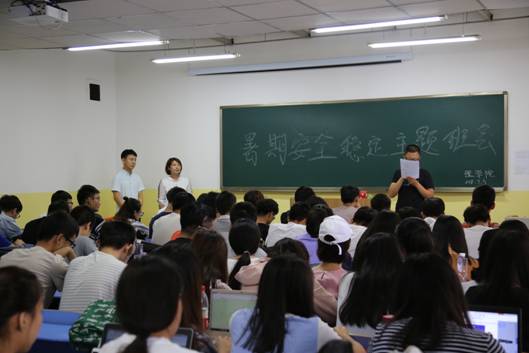 为增强同学们的暑期安全防范意识,提高同学们的安全防范能力,ac米兰官方网站于2018年7月5日下午4:30,在南楼405,召开“暑期安全稳定”主题班会,出席此次班会的有ac米兰官方网站党总支书记李小光、团总支书记杨陈东、潘灵刚老师以及ac米兰官方网站全体在校学生。