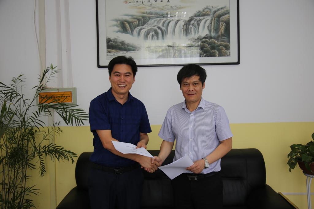 签约仪式上岳忠玉对孔经理莅临米兰官网表示欢迎。孔经理介绍了陕西麦创电子科技有限公司的基本情况。他指出公司主要从事高校物理演示仪器、科技创新仪器的研发、生产和销售于一体的高新技术企业。岳忠玉简要介绍了大学物理实验教学中心的基本情况,并提出为进一步提高物理实验教师的科学研究、实验设备研发能力、打造ac米兰官方网站“一流”物理教学科研团队,将科研成果转化为实践创新教学,满足社会需求,双方相互协作,共同发展的思想,建立校内共建物理实验仪器合作开发中心和校外物理实验教学实践与研究基地。
