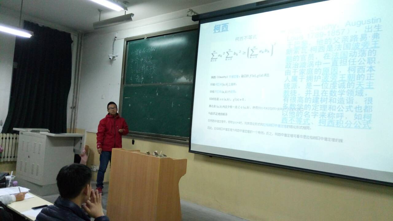 大赛中同学们各展神通,令全体师生赞叹不已。十名同学先后介绍了泰勒、柯西、陈省身、苏步青等数学名人名家。分享了名人名家的成就和生平轶事,使大家了解到学习数学并不是意见枯燥的事,既开阔了眼界又激发了兴趣。