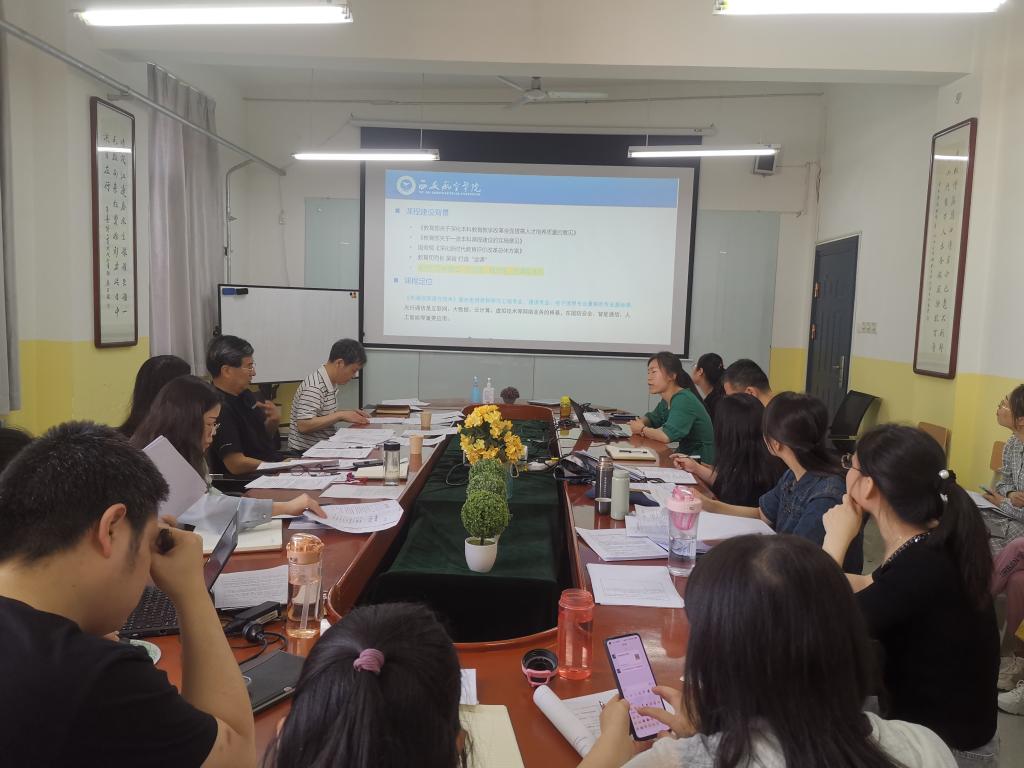 为全面落实立德树人根本任务,推动课堂教学革命,建设适应新时代要求的一流本科课程,ac米兰官方网站于2023年6月9日在莲湖校区教学南楼428室开展了一流课程开题答辩、研讨活动。活动邀请了陕西科技大学蔺小林教授做特别指导,学院一流课程评审委员和部分教师参加,院长李小光主持。