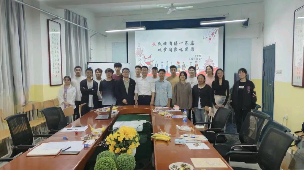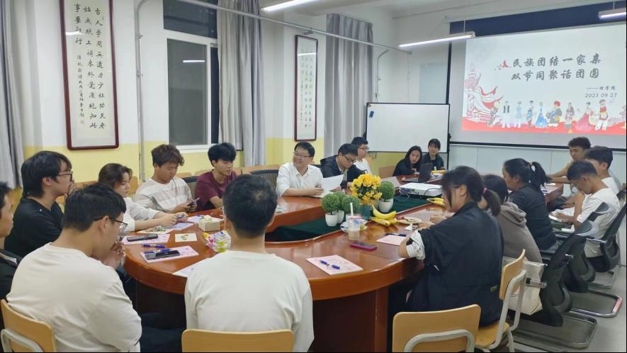 2023年秋季,ac米兰官方网站迎来了藏族、回族、壮族、满族、瑶族、土家族、锡伯族、侗族和畲族等少数民族同学。为进一步促进不同民族学生的交往交流交融,铸牢中华民族共同体意识,在中秋节和国庆节来临之际,ac米兰官方网站于9月27日晚召开举行了 “民族团结一家亲,双节同聚话团圆”少数民族学生座谈会,党总支书记胡红亮、一年级新生辅导员王向阳和少数民族学生参加了本次座谈会,座谈会由王向阳主持。