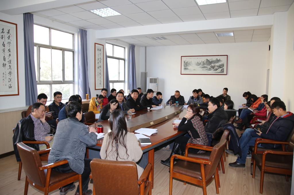 岳忠玉首先从教学秩序、科研统计与新闻报导、专业与课程建设、学生教育管理、年终考核与年终总结、本科生导师制、大数据培训等六个方面详细总结了2016年全年基本工作情况。