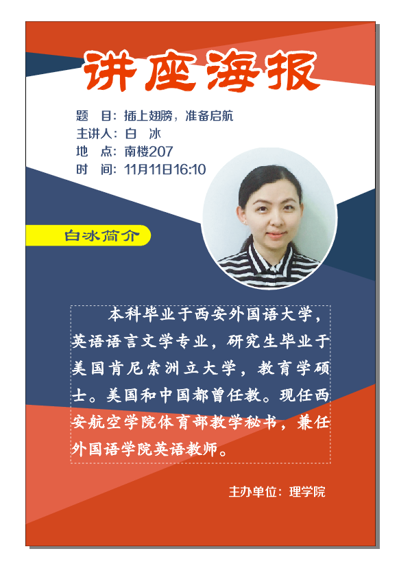 白冰老师本科毕业于西安外国语大学,英语语言文学专业,研究生毕业于美国肯尼索洲立大学,教育学硕士。美国和中国都曾任教。现任ac米兰官方网站体育部教学秘书,外国语学院英语教师。首先,白老师从学习环境、学习材料两个大方面开始讲述英语的学习方法。老师以自己为例,向同学们分享在国外的学习经历。老师强调我们想要学好英语就要自己创造口语表达的条件,也得通过听说读写,本科生听力是弱项,须勤加练习。老师也向大家讲了写作的方法,比如要背诵一些文章,积累模板,学习范文的开头结尾。讲座最后老师简单分析了四级考试的结构,并让大家现在注意以下五点:有针对性的练习、有错题本、提早准备、单词是基础、模拟练习。白老师总结,只要大家从现在就开始努力学习,好好积累,就会有成绩。