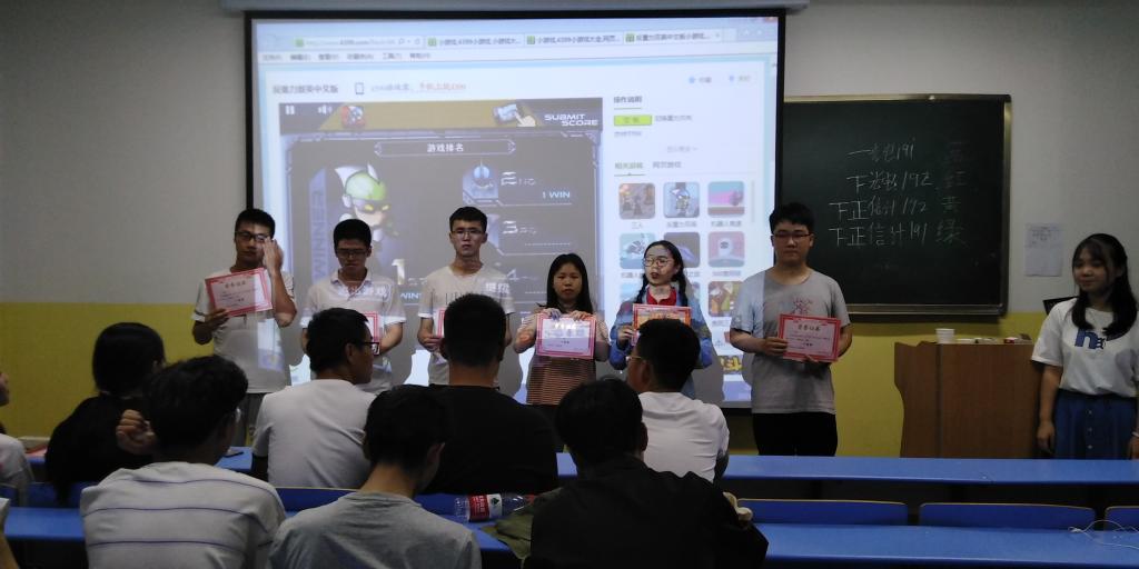 比赛开始前,主持人向各班参赛选手宣读比赛规则与奖品设置。本次比赛为积分制,分数最多的参赛班级将获得“中华小曲库”奖项。随后宣布比赛正式开始。首先,各班选出代表进行抢猜权比赛,比赛将各班分为红,蓝,黄,绿四个团队,由各参赛代表通过在电脑小游戏《反重力》的比拼中竞争猜歌资格,游戏排名第一的团队将进行猜歌,若猜歌成功,则为该团队计一分,猜歌失败不计分。全程比赛都沉浸在一片欢声笑语中。不管是小游戏还是猜歌环节,大家都拼尽全力向大家展现自己,在自己的青春岁月中留下浓墨重彩的一笔。在激烈精彩的比赛之后,主持人用精简的语音做了总结,随后为获奖班级颁奖。