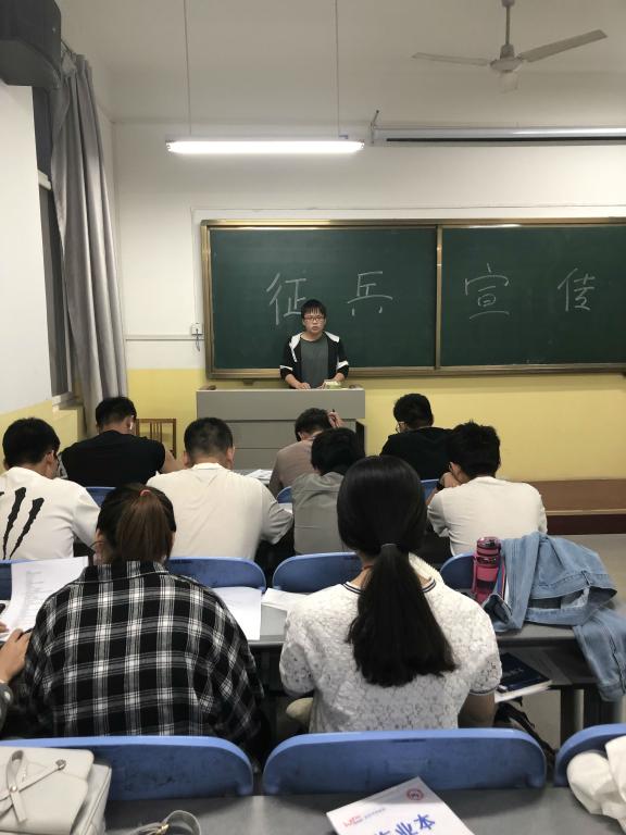 此次班会首先由志愿者部项光辉向同学们介绍了面向大学生征兵的意义及相关优惠政策,充分调动同学们报名应征的积极性。接着学生代表针对自己对征兵的想法和意向进行发言。