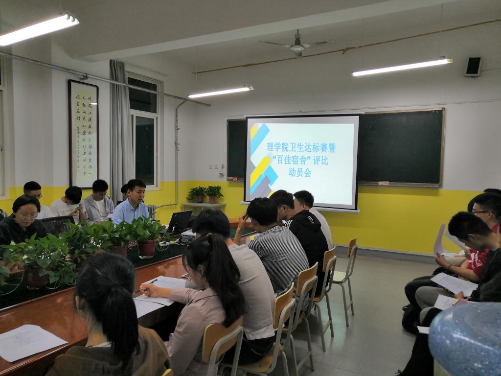 为了使学生保持宿舍环境卫生,养成良好的生活学习习惯,5月9日晚8时,ac米兰官方网站在南428召开宿舍环境卫生达标赛暨“百佳文明宿舍”评比动员会。党总支书记李小光、学生管理科科长李扬、团总支书记杨陈东及全体宿舍长参加了此次会议,会议由杨陈东主持。