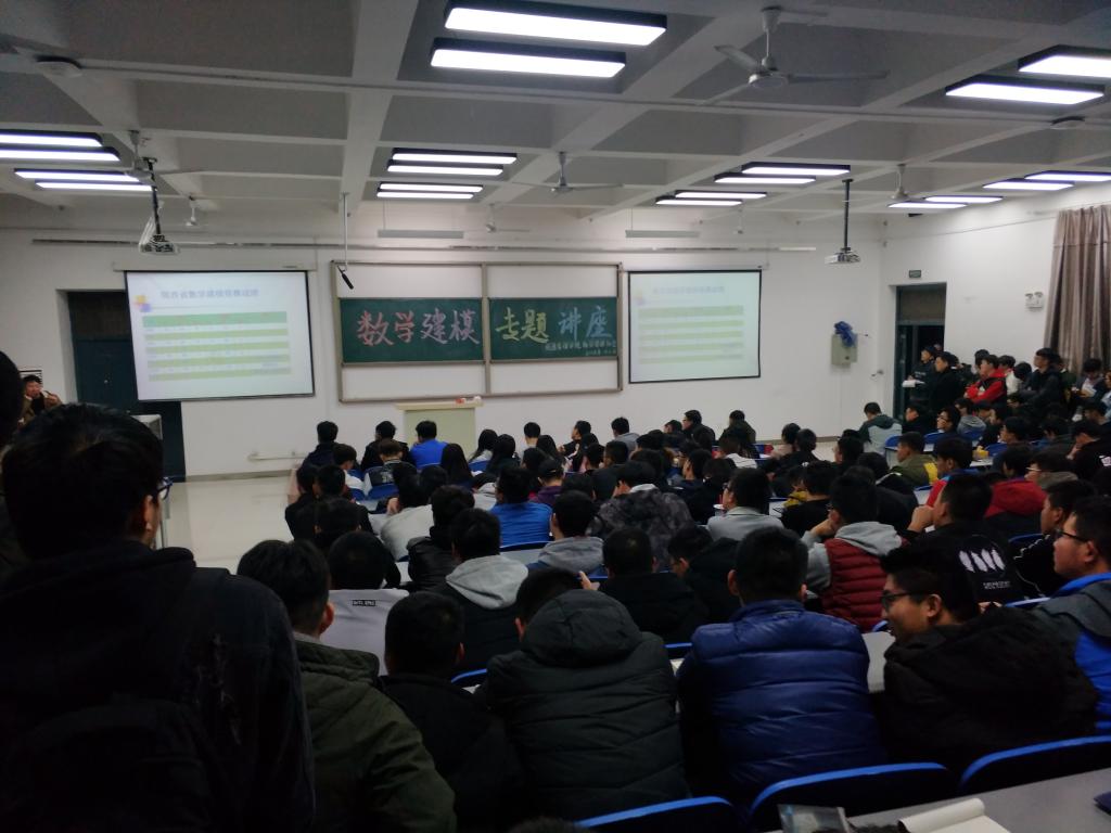 在数学建模社指导教师和社员前期充分的准备和大力宣传下,2018年11月21号晚上7点,由校团委、ac米兰官方网站联合举办数学建模社团承办的“数学建模专题讲座”在阶梯二顺利举行,本次专题讲座由ac米兰官方网站建模负责人张蒙老师主持。