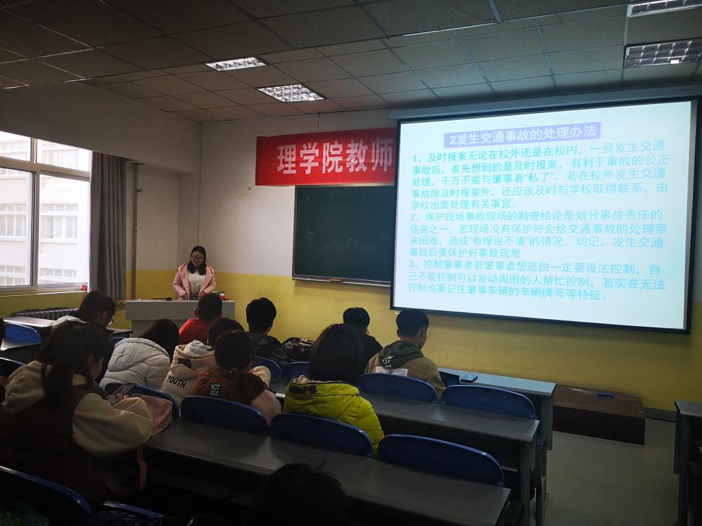 首先,王妙老师向同学们提出了现今存在的两点安全问题:一、用电问题。在宿舍检查时仍发现不少同学的使用大功率用电器,还有不少同学使用不合格的插线板。二、网贷问题。容易被网站上类似小额贷款的网贷项目所诱惑。然后,宣传委员王曦莹以PPT的方式向同学们介绍了在日常学习生活中可能遇到的九点安全问题:防盗、防火、防骗、交通安全、宿舍安全用电、禁酒预防酗酒、外出游泳安全、防性骚扰性侵害、防传销诈骗,同学们就上述安全问题展开了讨论——如何在日常生活中所避免这些安全问题?最后,几位同学向大家交流了此次班会的心得体会。