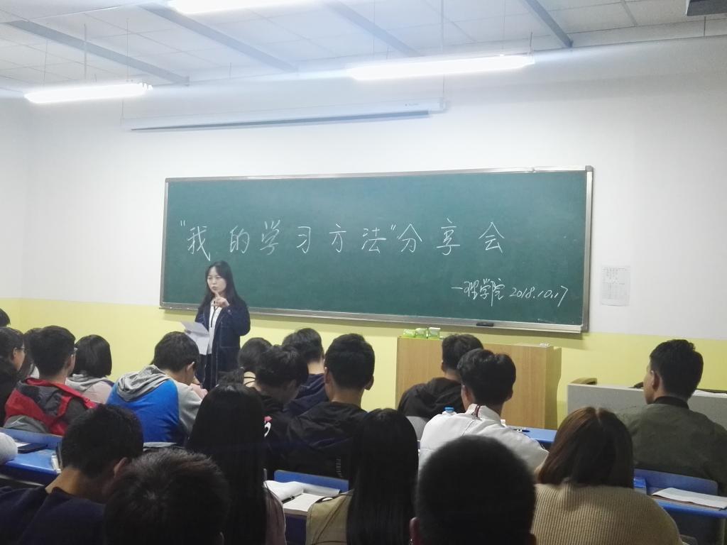 2018年10月17日晚8点,由ac米兰官方网站学习部部长荔阿翠主持的“我的学习方法”分享会在南楼405召开,会议邀请到四位荣获国家级奖学金获得者,大一全体新生参加了此次分享会。