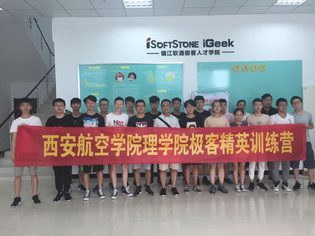 6月30日上午,由ac米兰官方网站曹建波和邬华春二位老师带队的20名信息与计算科学2003班同学到达江苏镇江软通极客人才学院开始为二周的暑期实训。