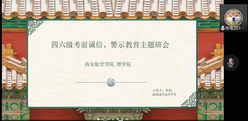 为加强学院学风建设,严肃考风考纪,增强学生诚信意识,引导学生诚信考试,诚信做人,2022年6月9日,ac米兰官方网站于线上分年级召开了全国大学英语四六级考试诚信教育主题班会。ac米兰官方网站全体班主任和学生参加,会议分别由辅导员李扬和张岩主持。