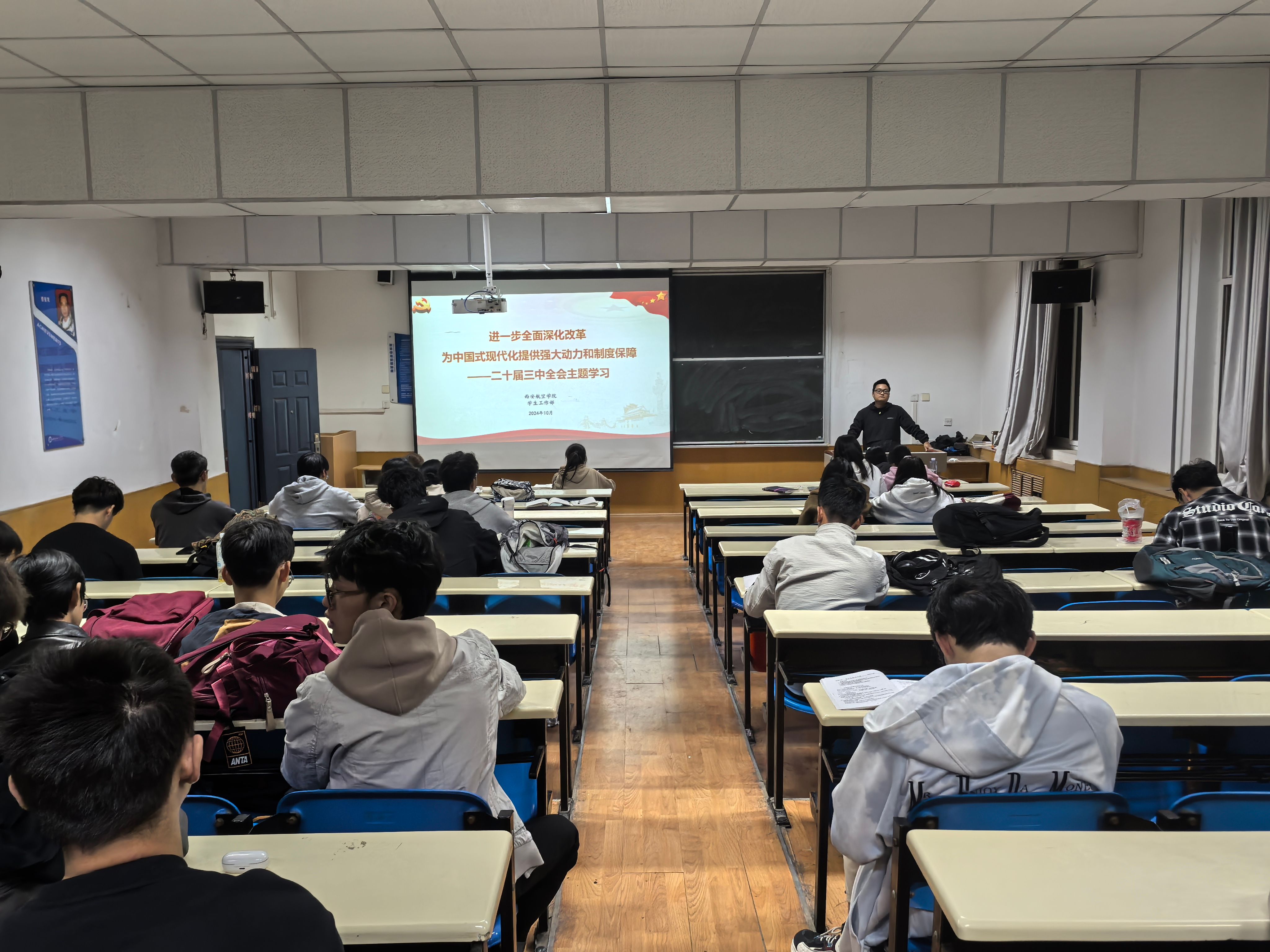 各年级辅导员和班主任带领同学们共同领学了《中国共产党第二十届中央委员会第三次全体会议公报》要点,引导同学们要以勤学习深化理论,以笃实践紧跟党的步伐,砥砺前行不懈奋斗,用青春热血书写属于新时代的辉煌篇章;开展“学习领航”计划,充分发挥奖学金获得学生的朋辈帮扶作用,营造风清气正的学习氛围;开展网络安全教育,提升学生网络安全防护意识,依法文明上网,自觉远离不良网络信息,增强抵御邪教意识,筑牢网络安全底线;教育引导学生合理利用学校“师生服务热线平台”公正客观反映诉求,理性维护个人权益;引导毕业年级学生积极参加各级各类招聘活动,并解读考研、考公、应征入伍的相关政策;宣传并扎实完成新生心理普查工作,强化心理三四级网络培训,加强学生心理危机预防和干预的教育引导。