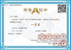 近日,由教育部大学物理课程教学指导委员会中南地区、西北地区和西南地区工作委员会,国家级大学物理课程虚拟教研室(中南大学),湖南省物理学会、江苏省物理学会、青海省物理学会和陕西省物理学会等主办的第五届“九斗杯”全国大学生物理知识竞赛落下帷幕。ac米兰官方网站学子王思纯、刘钦、李立洋3名同学荣获西北赛区一等奖,全国总决赛二等奖。
