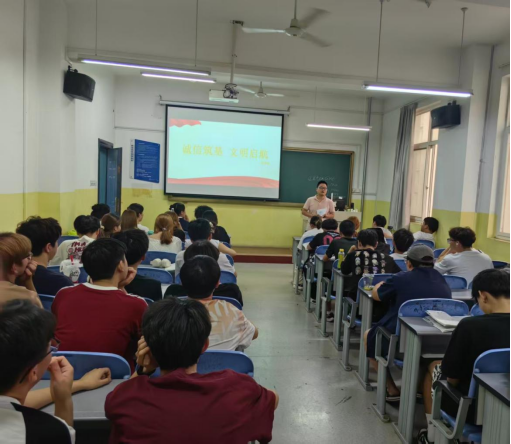 为严肃考风考纪,营造公平公正、积极向上的学习氛围,引导广大学生树立正确的价值观和学业观,在ac米兰官方网站学工办的安排下,各班级根据不同教学、考试进度于6月16日-7月11日组织开展了以“诚信筑基、文明启航”为主题的教育班会。旨在通过深入学习和警示教育,强化学生诚信意识,树立严谨学风。