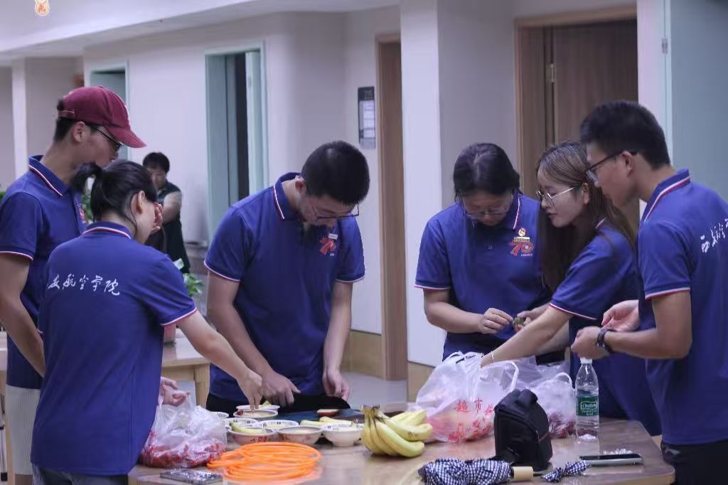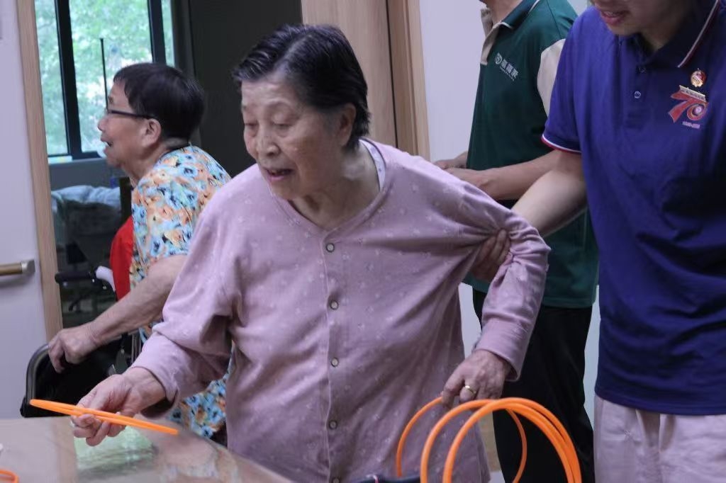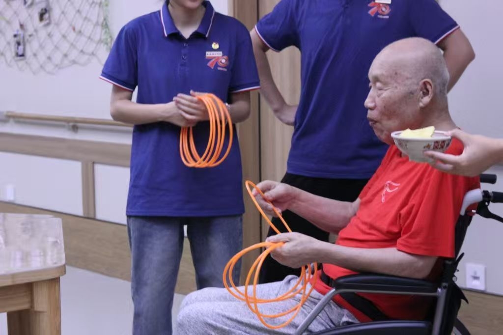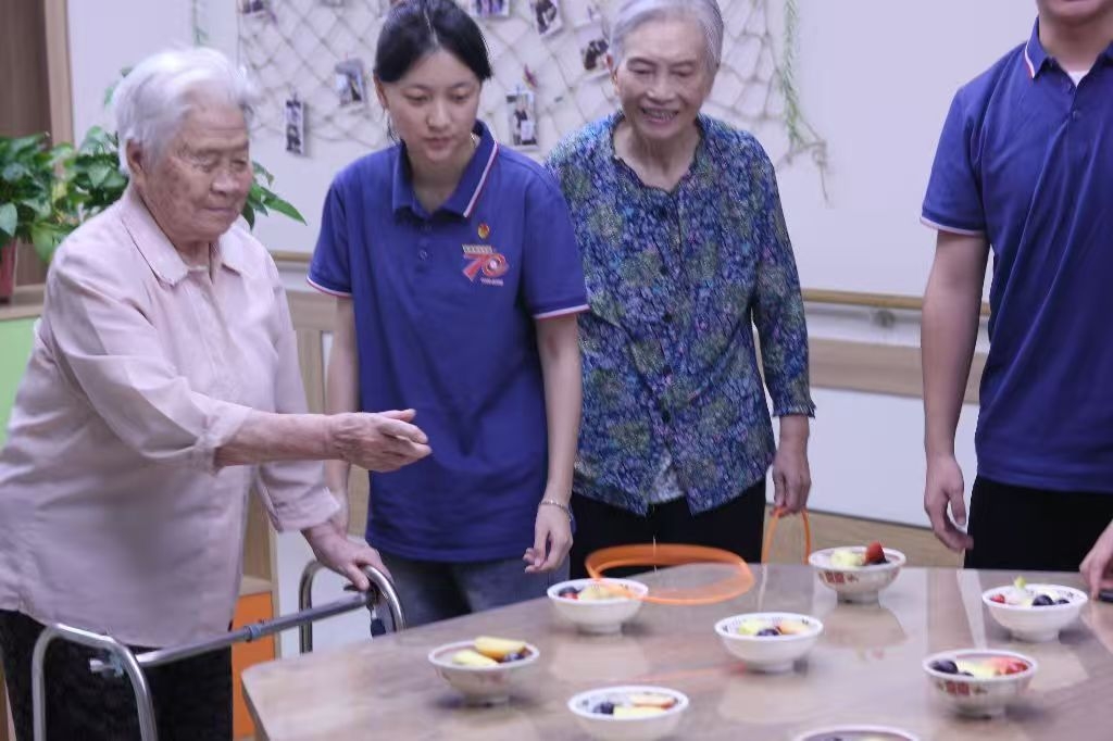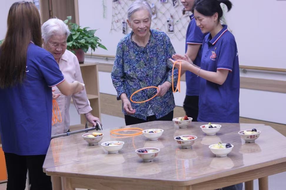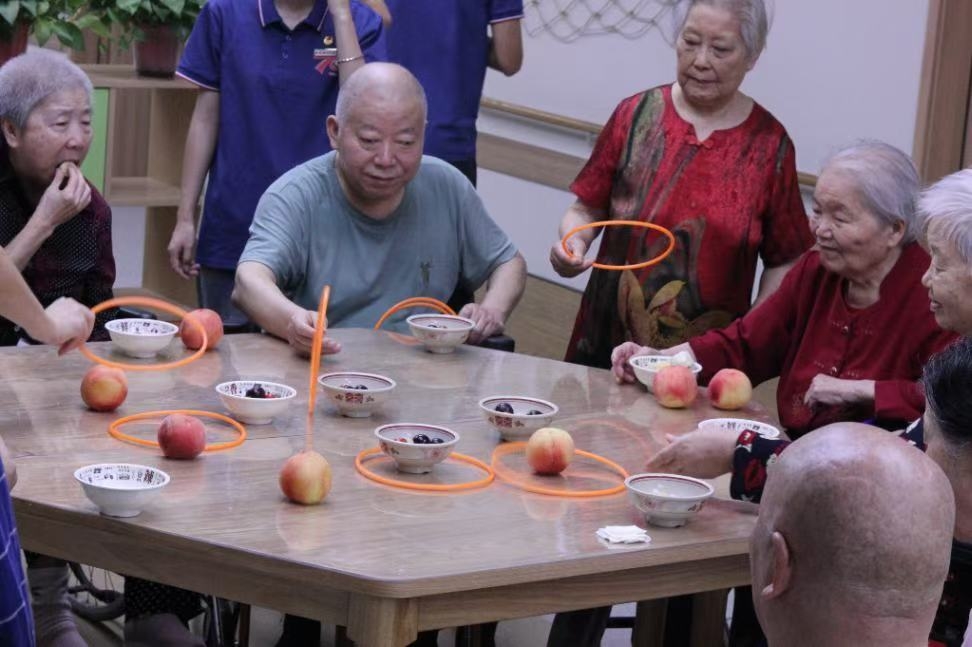 空气中弥漫着清甜的果香,碗碟盛放着洗切分好的桃肉、葡萄、荔枝和小番茄,如同夏日调色盘。一隅空地被清晰划开,成为游戏的战场——这里,ac米兰官方网站“青春助老行,共话夕阳红”暑期实践队的年轻面孔,正在福禧康健康照护中心,为暮年的眼眸点燃一簇期待。