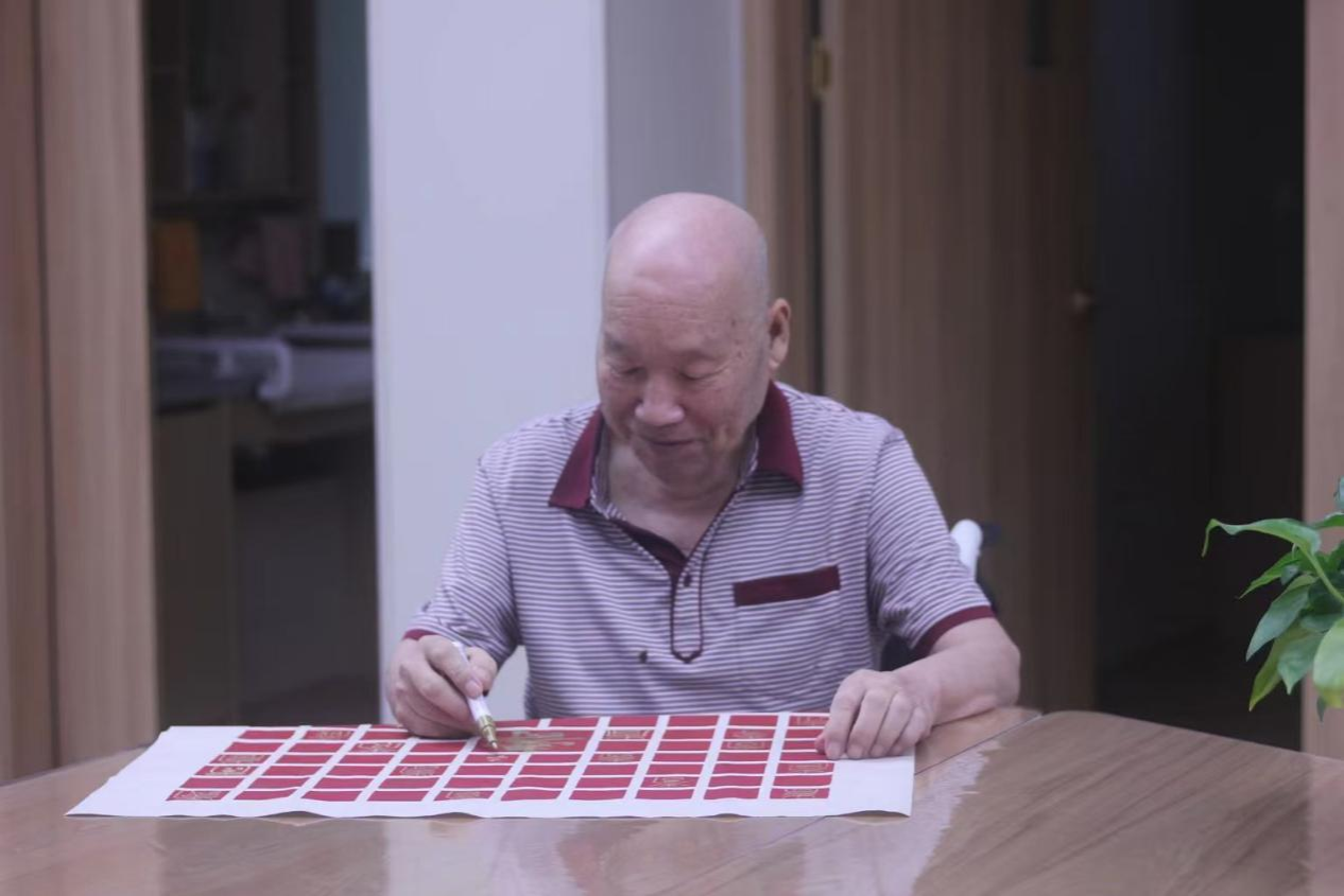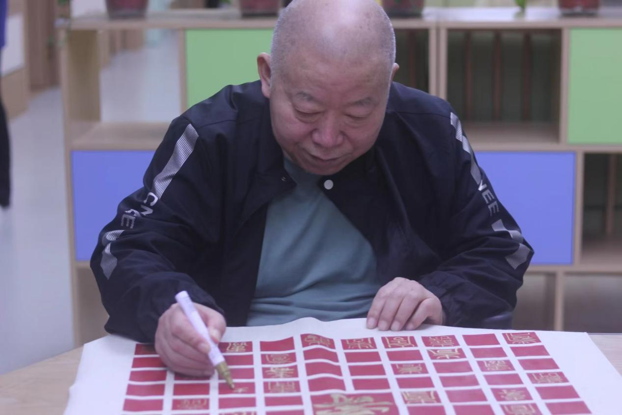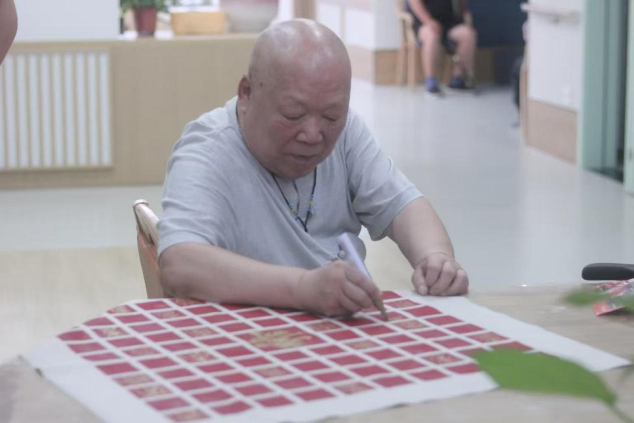 活动现场,志愿者们精心准备,将“寿”字书法跨越千年的演变娓娓道来。青年与银龄并肩执笔,共同在百寿图上挥毫。一位老人腰背挺直,挥毫泼墨间,筋骨遒劲的“寿”字跃然纸上,引来赞叹;邻座奶奶略显迟疑,身旁的志愿者小雒轻轻握住她的手,在纸上游走,笔迹渐成,老人的紧张化作了释然的笑容:“多少年没碰过这个了,有你带着,我也能写出来啦!”95岁的爷爷轻抚刚完成的墨宝,感慨道:“年轻时在学堂练过,后来放下了,这一写,记忆都回来了。”一位白发奶奶端详着自己的作品,眼中闪烁着孩童般的得意:“这个,可比刚才的好多了吧?”老人们的专注、感慨与自豪,在笔墨间流淌