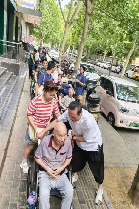 前往公园的路上,志愿者们有序列队,推着各自负责的爷爷奶奶稳步前行。阳光毫无保留地倾洒而下,给老人的银发镶上金边,他们脸上漾开的笑意,比阳光更耀眼。路过的行人纷纷驻足,或报以微笑,或竖起大拇指,这无声的认可,似一股暖流,流淌在每个人心间,成为志愿路上最美的注脚。