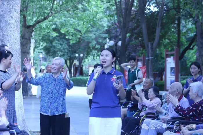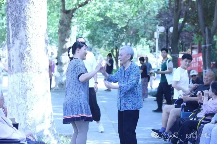 抵达公园,志愿者们贴心地将老人推至阴凉处。随着音响轻响,张奶奶率先亮嗓, “雄赳赳,气昂昂,跨过鸭绿江……” 饱含深情的歌声,瞬间点燃氛围。刘奶奶跟着旋律,挥动起手臂,似在为往昔岁月打节拍;王爷爷围坐在志愿者中间,绘声绘色讲述当兵时的烽火故事,那些热血片段,透过他的讲述,在年轻人们心中重映;还有奶奶偶遇多年未见的老友,惊喜的呼喊、紧紧相握的双手,把岁月沉淀的情谊,演绎得淋漓尽致。片刻后,志愿者组织起健身操活动,长者们认真抬手、踢腿,一静一动间,满是对生活的热爱,也让这份陪伴愈发鲜活。