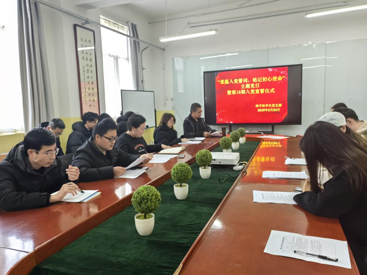 为深入学习贯彻习近平新时代中国特色社会主义思想,加强党员党性教育,2025年2月24日,ac米兰官方网站学生党支部于南428举行“重温入党誓词,铭记初心使命”主题党日暨16期预备党员入党宣誓仪式。本次会议由支部组织委员王向阳主持,全体师生党员参会。