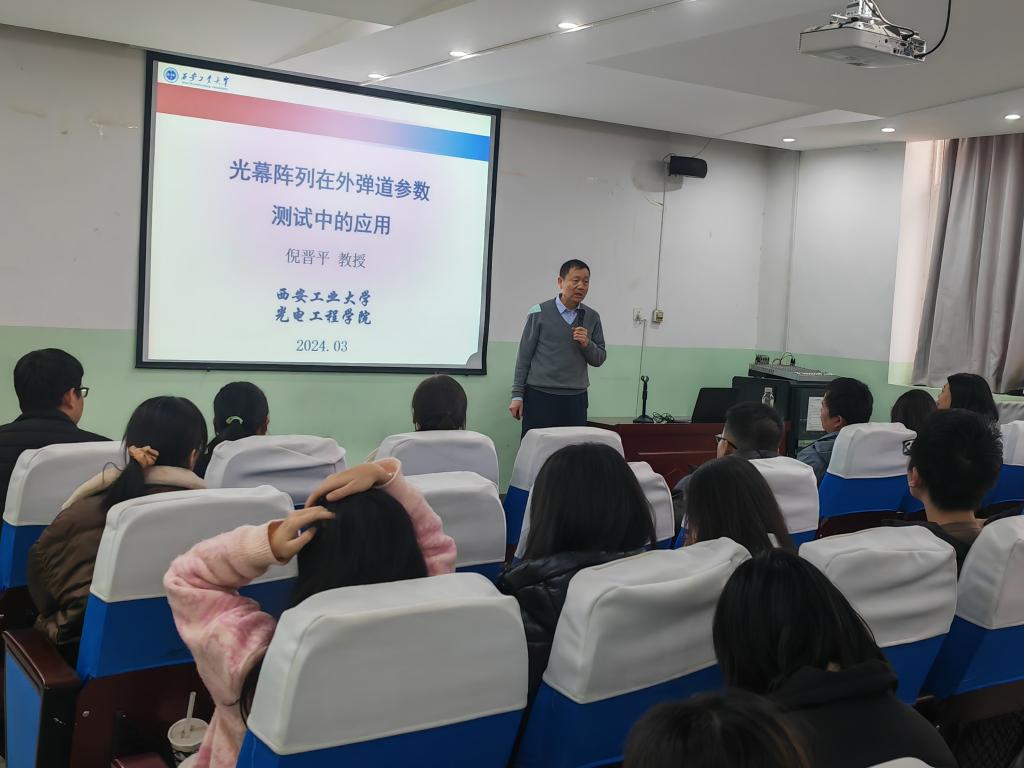 为拓宽学生视野,营造良好的学术氛围,促进新知识、新技术的传播,提升教师专业技术水平、激发学生科研学术热情,3月8日下午,ac米兰官方网站邀请西安工业大学倪晋平教授在南108做了题为《光幕阵列在外弹道参数测试中的应用》的专题讲座。ac米兰官方网站院长李小光、副院长丁琦、全体物理教研室教师及光电专业学生等200余人参加了此次讲座,讲座由李小光主持。