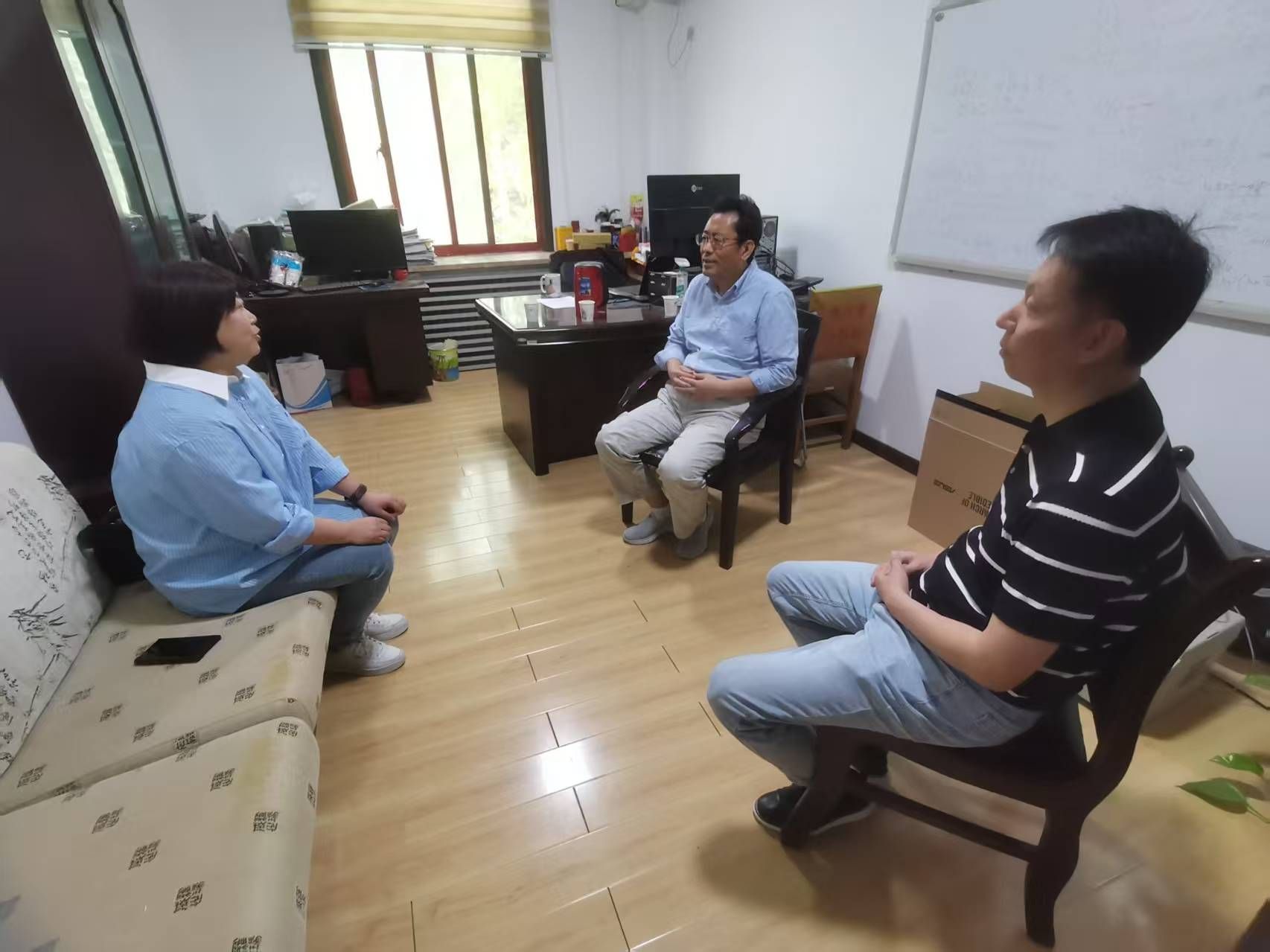 调研团队向陕西省工业与应用数学学会理事长、西安交通大学数学与统计学院王卫教授汇报了近年来米兰官网数学建模活动的开展情况,王卫则介绍了西安交通大学全方位、立体化的数学建模培训体系,通过强化理论实践结合,提升学生创新与解决问题能力的成效。