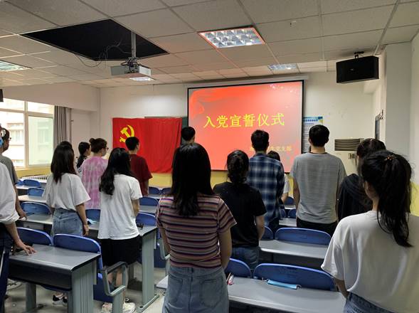ac米兰官方网站学生党支部于2020年7月1日在教学南楼408进行新入党党员宣誓仪式。宣誓仪式由学生党支部书记李扬主持,参加人员学生党支部全部成员,宣誓人员为王哲、杨滨瑞、张璟明、姜悦、南凯悦、翟同悦、郭鹏德、马辰璐、杨静、曹盼盼、杨帆、赵鑫、伍袁弘、刘瑱疆、陈延峰、车雨娟、黄诚英、李轶、苗旭东十九名同志。