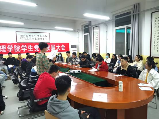 大会开始,组织委员潘灵刚清点参会人数,并介绍支部成员。符合开会要求后,张英、李凡、强博思、王文科、史小茹、张宏飞、王曦莹七名同学依次宣读了入党志愿书,随后培养人向大家介绍了这七位同学在培养期间的表现情况,支部成员对这七名同学分别进行了民主评议。