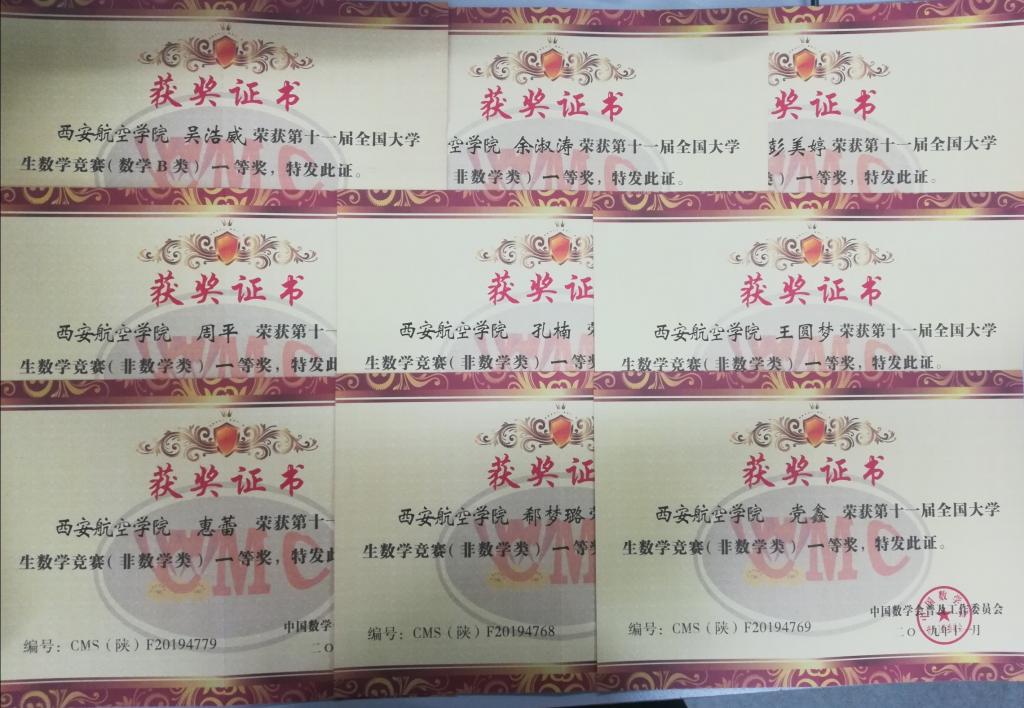 2019年第十一届全国大学生数学竞赛成绩揭晓,米兰官网共获82项奖项,其中陕西省一等奖17项、二等奖30项、三等奖35项,其中数学类获省级一等奖1项,省级二等奖1项,省级三等奖3项,本次竞赛是米兰官网第四次参赛,也是历年来参加人数和获奖人数最多的一次。