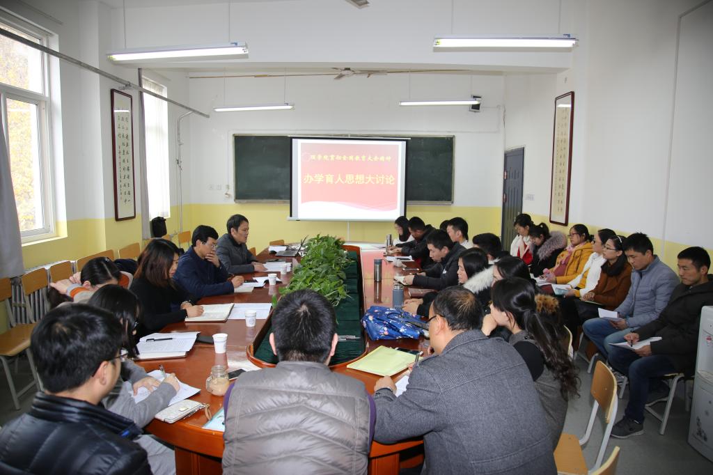12月7日下午,ac米兰官方网站在南428会议室开展贯彻全国教育大会精神办学育人思想大讨论活动,副校长宋文学、ac米兰官方网站院长岳忠玉、党总支书记李小光、副院长丁琦以及ac米兰官方网站全体教职工参加本次活动。活动由岳忠玉主持。