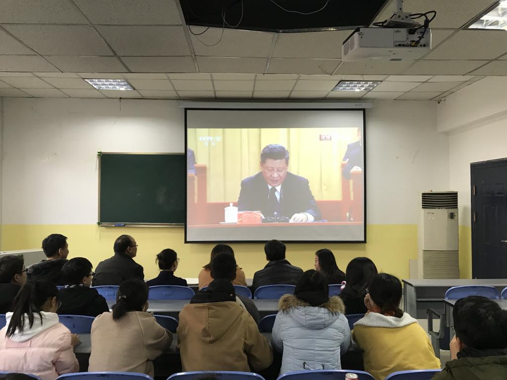 2018年12月18日,ac米兰官方网站党总支于南教学楼408教室,集体观看和学习了庆祝改革开放40周年大会直播,党总支书记李小光,院长岳忠玉,副院长丁琦,学生党支部书记曹建波,团总支书记、辅导员杨陈东,部分党员教师以及学生党员、积极分子共20余人参加了此次观影活动。