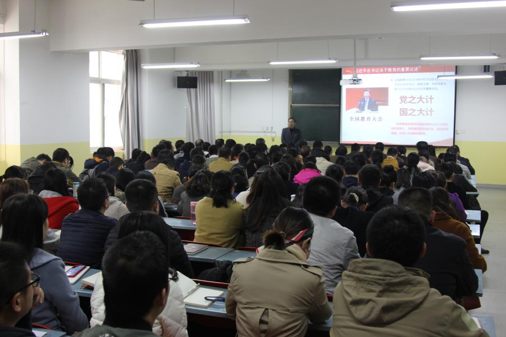 根据学校“不忘初心、牢记使命”主题教育总体部署安排,11月8日下午,校党委书记陈平社在教学南楼207教室为全校教工党员上了一堂生动精彩的主题教育专题党课。ac米兰官方网站全体教工党员参加了学习。