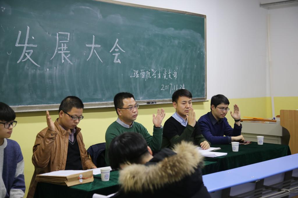 2017年11月24日,ac米兰官方网站学生党支部在南405召开了党员发展大会。本次会议主要讨论的是李智,李小鹏,黄伟,雷霞,郭璐五位入党积极分子是否能发展为中共预备党员。参与本次会议的人员有正式党员4名,预备党员5名,全体入党积极分子以及递交入党志愿书的同学。