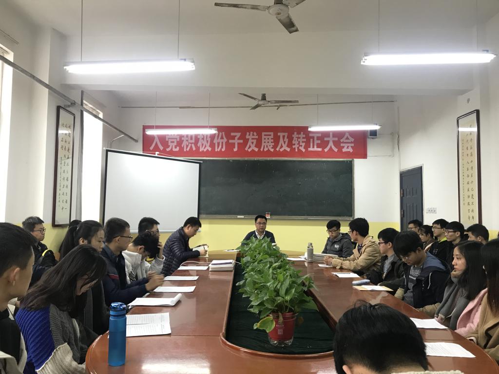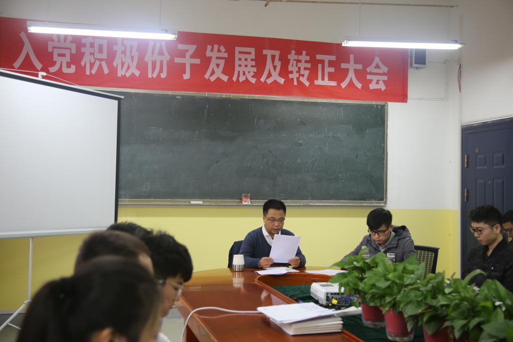 2018年11月30日,ac米兰官方网站党总支学生党支部于教学南楼228召开入党积极分子发展及转正大会,学生党支部书记曹建波老师、辅导员杨陈东老师出席此次大会,会议由曹建波老师主持,ac米兰官方网站学生党员、预备党员、积极分子等共有50余学生参加。