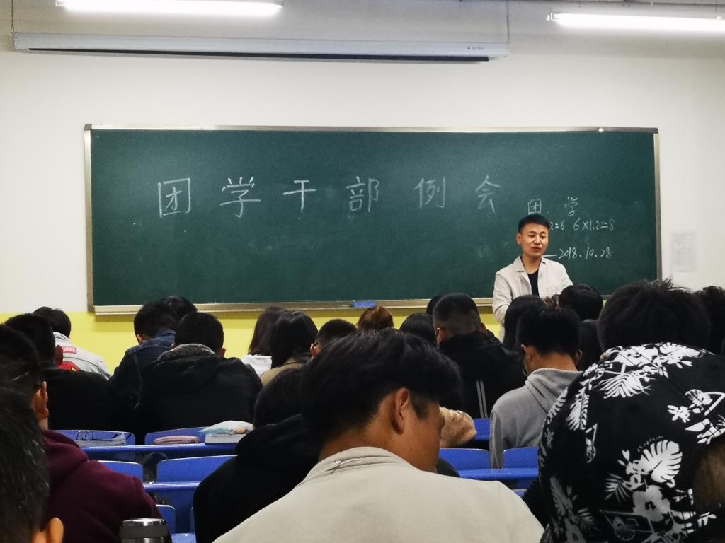 2018年10月28日晚八点,ac米兰官方网站团学干部例会于南楼405召开,ac米兰官方网站辅导员杨陈东老师和ac米兰官方网站全体干事出席本次会议。