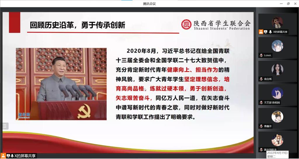 2022年4月19日晚19点30分,ac米兰官方网站于线上召开2022年春季学期学生骨干集体培训会议,ac米兰官方网站团总支书记、辅导员张岩和全体团学干部参加了本次会议,会议由许高博主持。