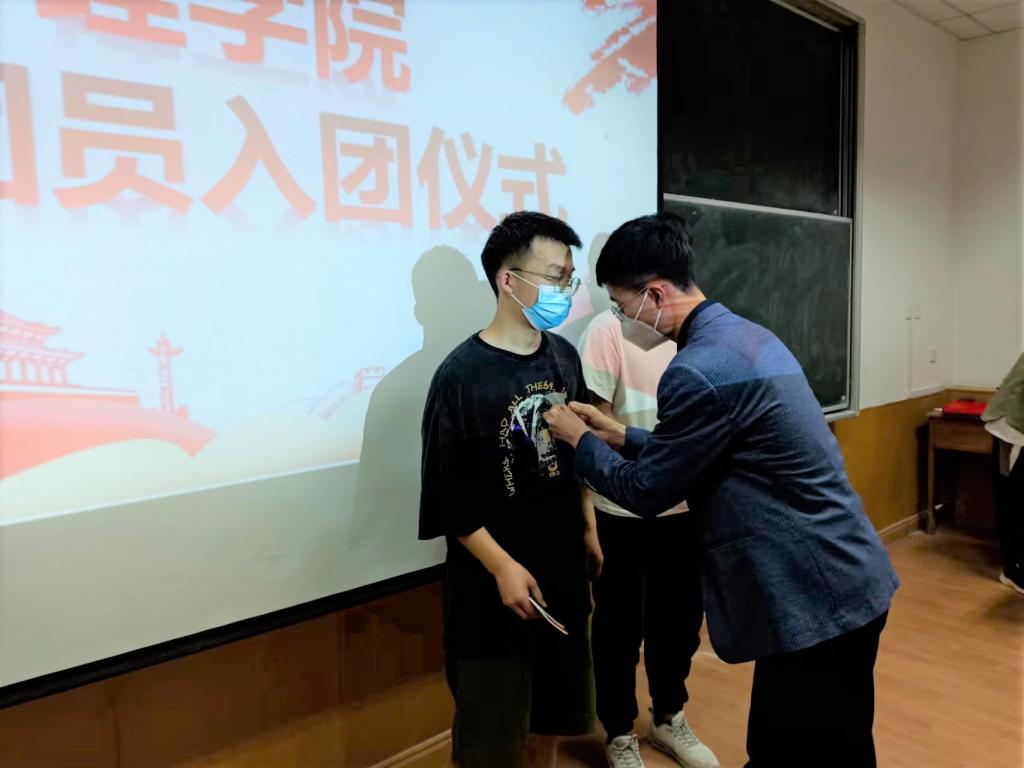 2022年5月3日晚7点,ac米兰官方网站在南楼308教室举办新团员入团仪式,ac米兰官方网站团总支书记张岩老师,各班团支书和30余名学生代表参加。参会人员全程佩戴口罩,隔位就坐。仪式由张超康主持。