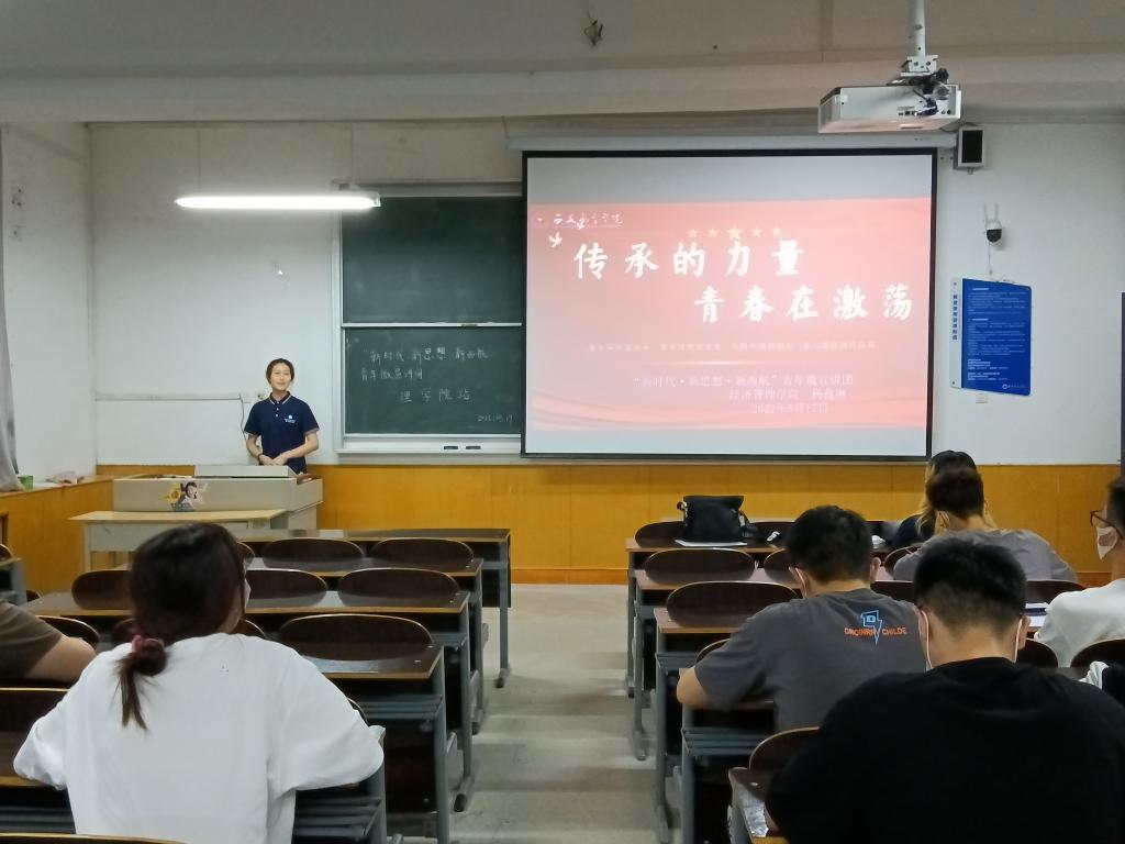 2022年5月19日晚七点,为庆祝中国共产主义青年团成立100周年,ac米兰官方网站在南楼307教室举办“百年正青春,青春正当时”主题宣讲会,组织学习习近平总书记在庆祝中国共产主义青年团成立100周年大会上的重要讲话,本次大会由ac米兰官方网站青年微宣讲团主讲,ac米兰官方网站大一大二部分学生参加。