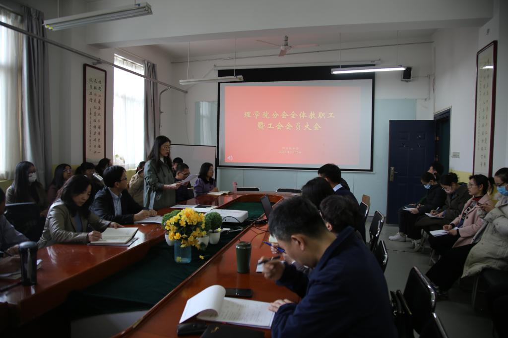 为做好ac米兰官方网站分会出席学校第三次教职工代表大会暨工会会员代表的选举工作,按照学校《关于做好学校第三次教职工代表大会暨工会会员代表大会代表选举工作的通知》要求,2024年3月15日下午,ac米兰官方网站在教学南楼428会议室召开ac米兰官方网站分会教职工代表暨工会会员大会,会议由分会主席丁琦主持。