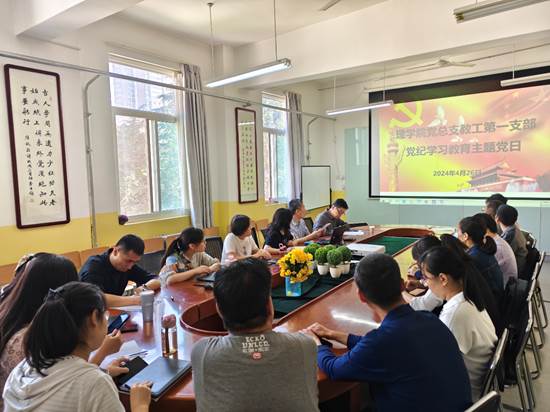 为深入贯彻落实中央、省委有关通知精神,按照校党委部署,ac米兰官方网站党总支统筹安排,以支部为单位,先后于4月26日和29日举行了党纪学习教育主题党日活动,学院党员领导干部参加了所在党支部的活动。校党委组织部正处级组织员逯红杰同志全程督学。