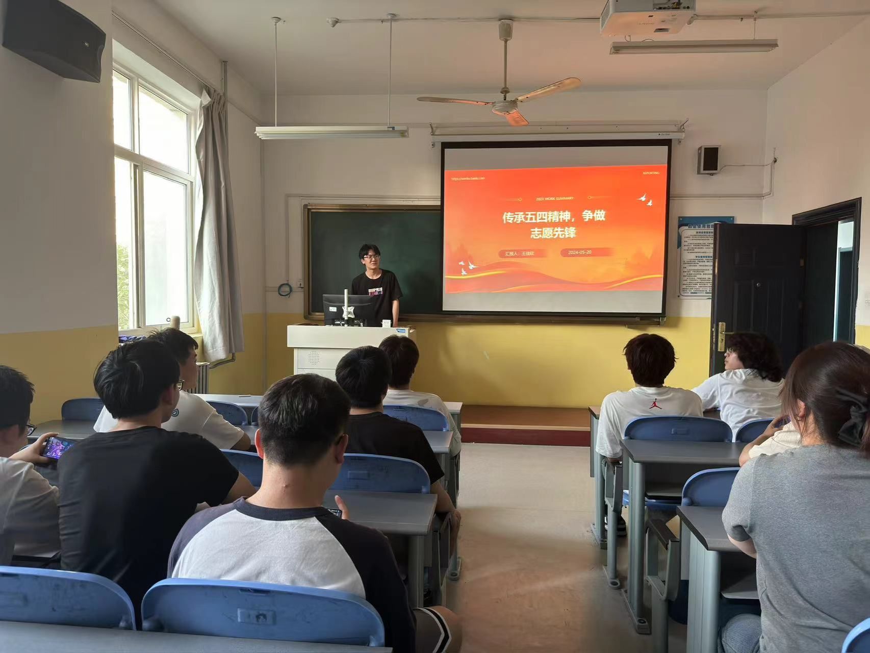 为深入贯彻习近平总书记关于青年工作的重要论述,激励米兰官网学生传承五四精神,勇担时代重任,积极投身新时代中国特色社会主义伟大事业,以实际行动践行社会责任,彰显青春担当,ac米兰官方网站团总支于5月20日在南楼309教室举行“传承五四精神,争做志愿先锋”主题团日活动。