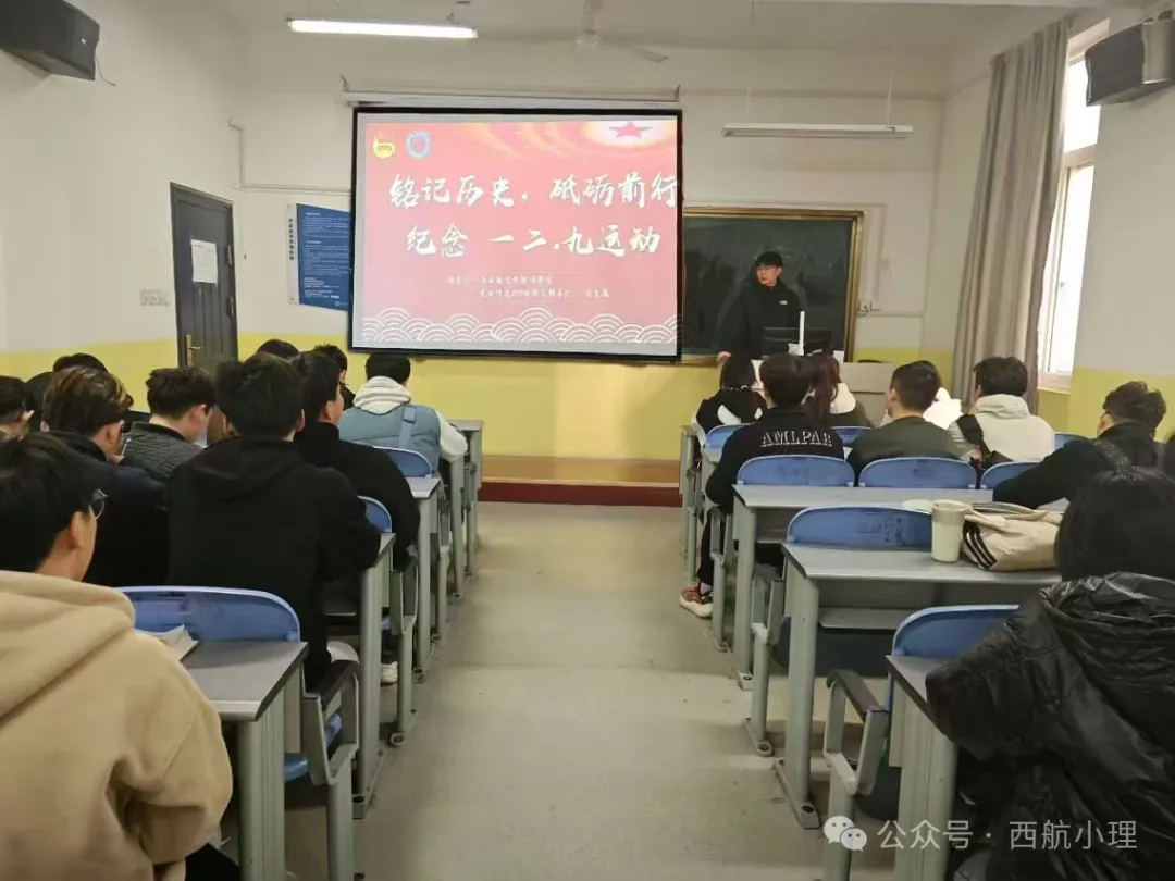 活动伊始,团总支副书记沈惠瀛介绍了“一二・九运动”的历史背景。在1935 年 12 月 9 日那个黑暗的年代,国家危机四伏,民族危难重重。北平的青年学生们在这样的绝境中挺身而出,发起了这场震撼全国的抗日救国运动。接着,沈惠瀛带领着同学们阅读相关史实,深入学习“一二·九运动”的精神内涵与历史意义。随后的观影环节,纪录片以详实的历史资料和生动的影像画面,真实地再现了当年那场波澜壮阔的运动场景。在讨论环节,同学们纷纷踊跃发言,分享自己的深刻感悟。他们纷纷表示通过这次活动,更加深刻地认识到了和平的珍贵以及自己所肩负的历史使命。在今后的学习和生活中,一定会以“一二・九”运动中的先辈们为榜样,努力提升自身的综合素质,积极投身于社会实践和公益活动中,以实际行动为社会贡献自己的青春力量。