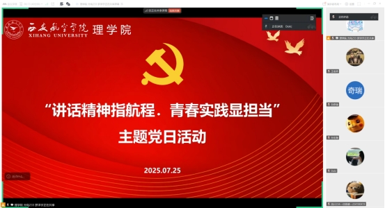 2025年7月25日,ac米兰官方网站学生党支部举行了“讲话精神指航程,青春实践显担当”主题党日活动,深入学习习近平总书记在山西考察重要讲话精神,通过“学讲话+践担当”双线融合模式,激发青年党员使命意识。会议由组织委员王向阳主持,支部全体党员和积极分子参加。