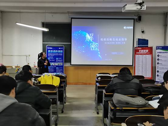 为应对当前就业形势,做好学生就业工作,提升学生就业意识,确定有效的职业发展目标,11月25日下午4点,ac米兰官方网站在教学南楼307举办校招攻略及就业指导讲座,邀请陕西文都智链计算机科技有限公司校企合作负责人付小荣老师主讲,ac米兰官方网站大三大四信息计算专业同学参加了讲座。