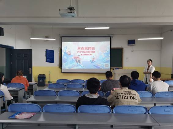 会议开始后,演讲老师首先向大家介绍了选择在线教育行业的优势——全国共享优质的教育资源,学习更高效,效果更显著,性价比更高。在大家都对在线教育有了大致的概念后,演讲老师引入了学而思网校的概况。学而思网校作为好未来教育集团旗下的中小学在线教育品牌,是国内较早整合“互联网”和“教育”两大领域的学习平台,处于国内教育行业的第一位。参加招聘会的同学们对学而思网校的发展历程和市场规模都有了了解。最后,演讲老师说明了本次招聘会的重点,待招岗位为学而思网校的在线班主任老师,还向同学们说明了本岗位的工作职责、任职要求、薪资待遇、工作地点等等。老师还强调了本次招聘的在线班主任的两个大体方向,学习服务方向和运营转化方向。部分同学递交了简历进行了初步面试,等待下一步的考试。