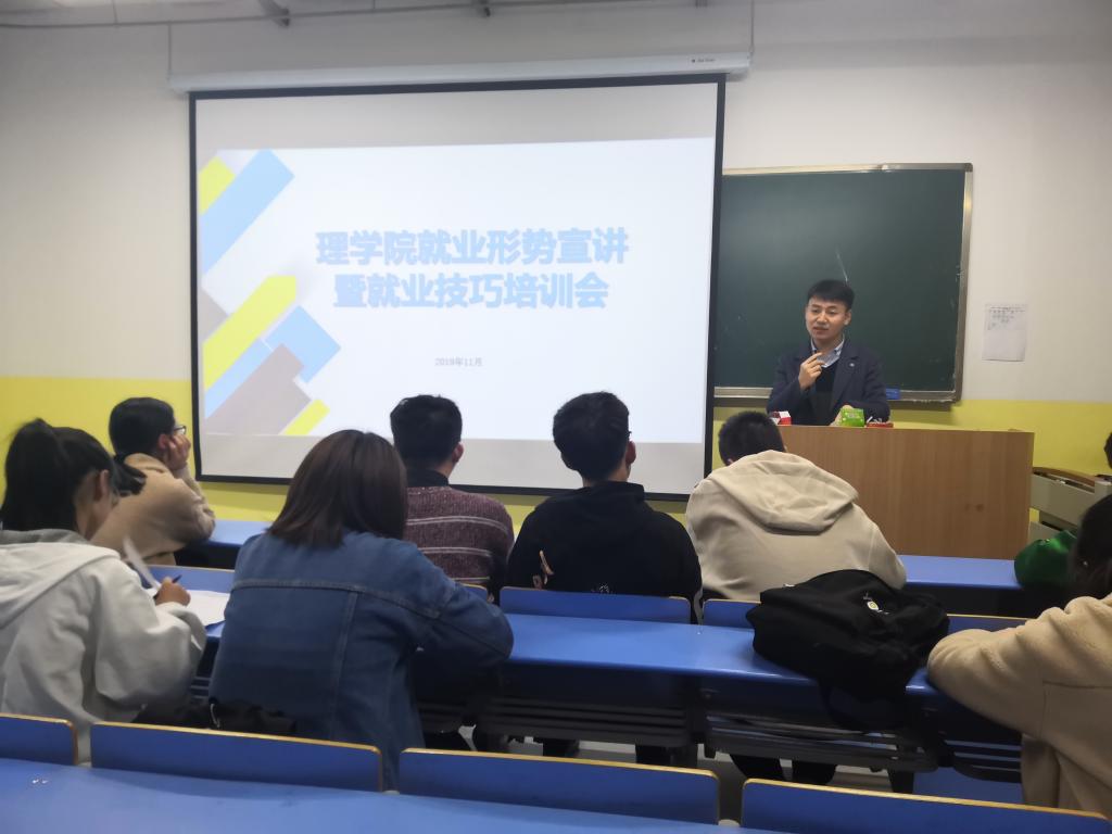 为进一步做好毕业生就业指导工作,2019年11月12日下午,ac米兰官方网站在教学南楼405教室召开就业形势宣讲暨就业技巧培训会。会议由ac米兰官方网站团总支书记、辅导员杨陈东主持,大三大四所有学生参加会议。