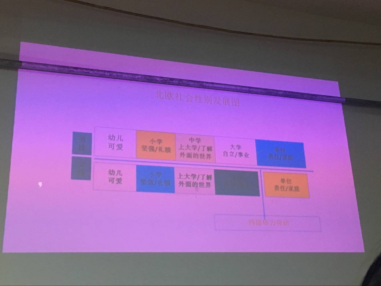 前不久,李钰蒙、黄鑫参加了“陕西省大学生社团组织负责人性别意识提升培训班”,收获良多。此次培训旨在将培训班所学就业意识和就业技巧分享给其他同学。两位主讲人以贴合学生的角度来进行此次讲座。首先,李钰蒙介绍了社会性别角色的刻板印象,并向大家提问:在职场中男生、女生分别可以做什么,差异体现在何处?其次,李钰蒙表述了生理性别和社会性别的决定因素和特征表现,以及其不同状况和发展趋势并就社会性别做了详细阐述。黄鑫就理解各国社会平等问题详细展开,比较了中国社会性别发展和北欧社会性别发展进程,并介绍国外四种劳动阶层,由低到高,男女不一。