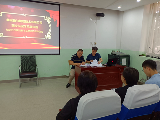 2021年9月15日下午四点半,北京拉勾网络技术有限公司与ac米兰官方网站在南楼108报告厅进行校企合作实践教学基地签约授牌仪式。