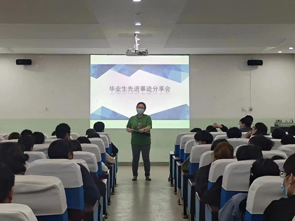 为发挥优秀毕业生的榜样引领作用,帮助大三同学了解当前就业形势,树立正确的就业观,5月25日晚,ac米兰官方网站在莲湖校区南楼108教室召开了毕业生先进事迹分享会。ac米兰官方网站党总支书记胡红亮,学生管理科科长李扬,辅导员张岩及大三全体学生参加。