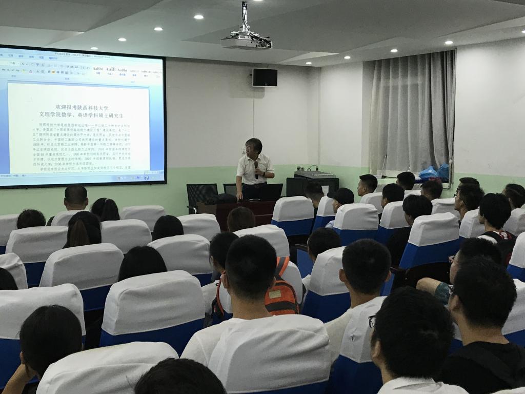 讲座开始,侯教授首先向同学们介绍了他们学院所招收的研究生的专业情况并且讲述了每个专业的研究方向,以及考上研究生之后的就业方向。然后向同学们介绍了陕科大研究生录取的情况,表示欢迎同学们报考陕西科技大学文ac米兰官方网站的硕士研究生。