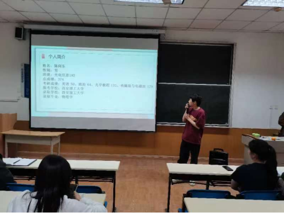 随后,李扬分析了2019级学生的学习和考研情况,建议2020级准备考研的同学正确看待考研和择业,鼓励同学们将考研与日常学习结合起来,坚定信心,不断进步。胡红亮强调,要先树立明确的考研目标,同时结合自身实际情况,合理选择考研院校,找到自己的学习方式,并且根据自身的学习状态及时调整学习计划,克服学习过程中遇到的困难,取得好成绩。